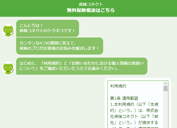 保険コネクトは相談の敷居が低く、気軽にチャットから相談することができます。